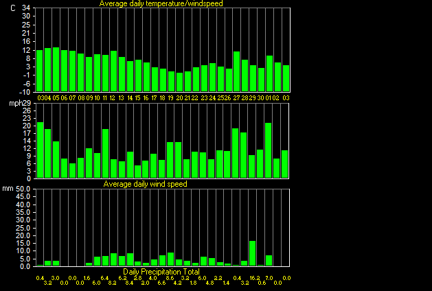 Maximum windspeed = 34.5 mph from 203°(SSW) on day 01 at time 05:32