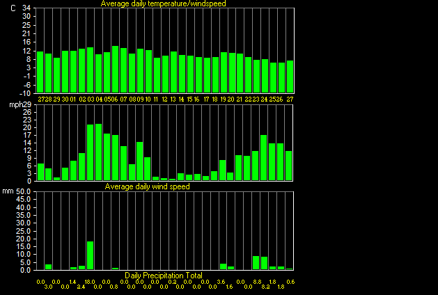 Maximum windspeed = 47.2 mph from 360°( N ) on day 03 at time 23:20